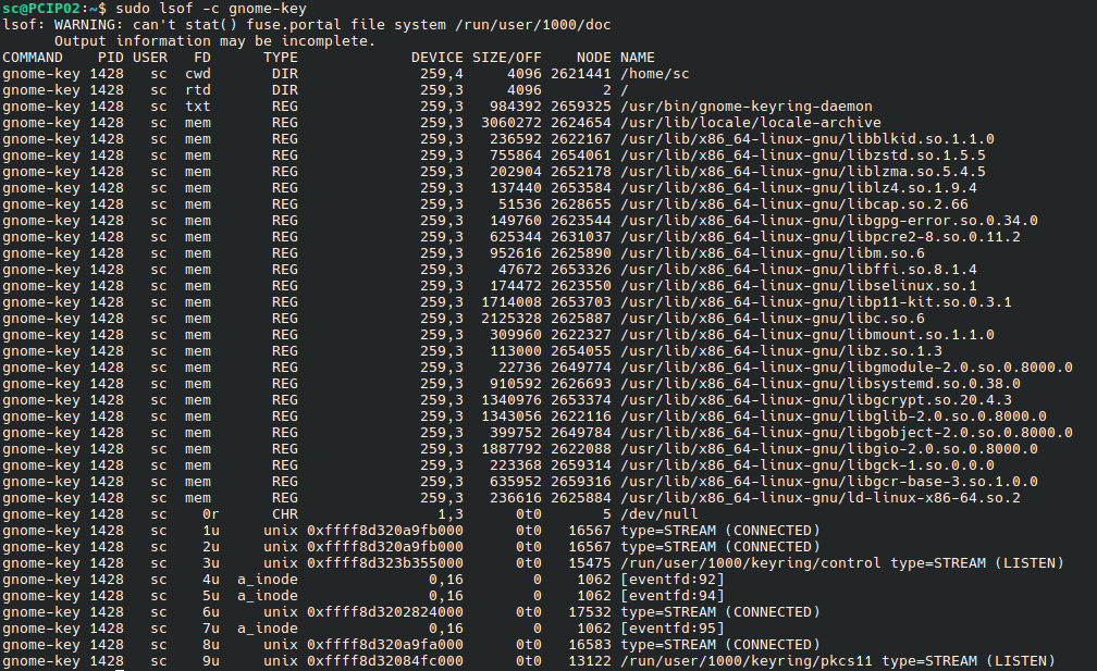 sudo lsof -c gnome-key